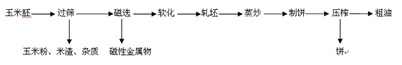 我公司生產(chǎn)的液壓榨油機壓榨玉米坯制油工藝如下: