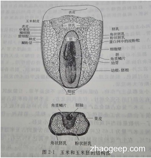 玉米(maize,corn)又稱玉蜀黍或苞谷,屬草本植物。玉米籽粒結(jié)構(gòu)由外皮、胚乳和胚部組成(如圖所示):