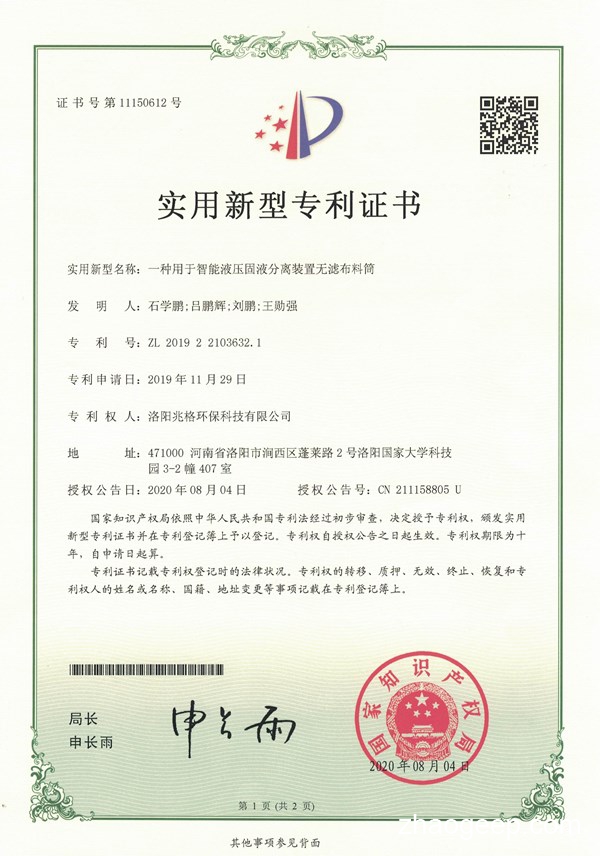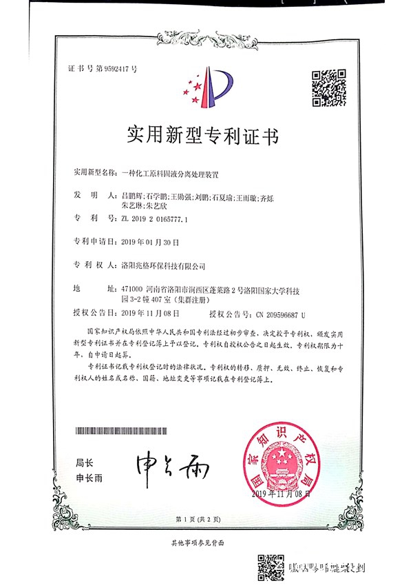 洛陽兆格環(huán)保科技有限公司自成立之初就秉承“創(chuàng)新是企業(yè)發(fā)展的核心動力”的宗旨,始終將客戶技術(shù)領(lǐng)域內(nèi)的痛點解決、技術(shù)研發(fā)作為企業(yè)首要任務(wù),累計獲得25項知識產(chǎn)權(quán),目前18項有效,7項已失效。