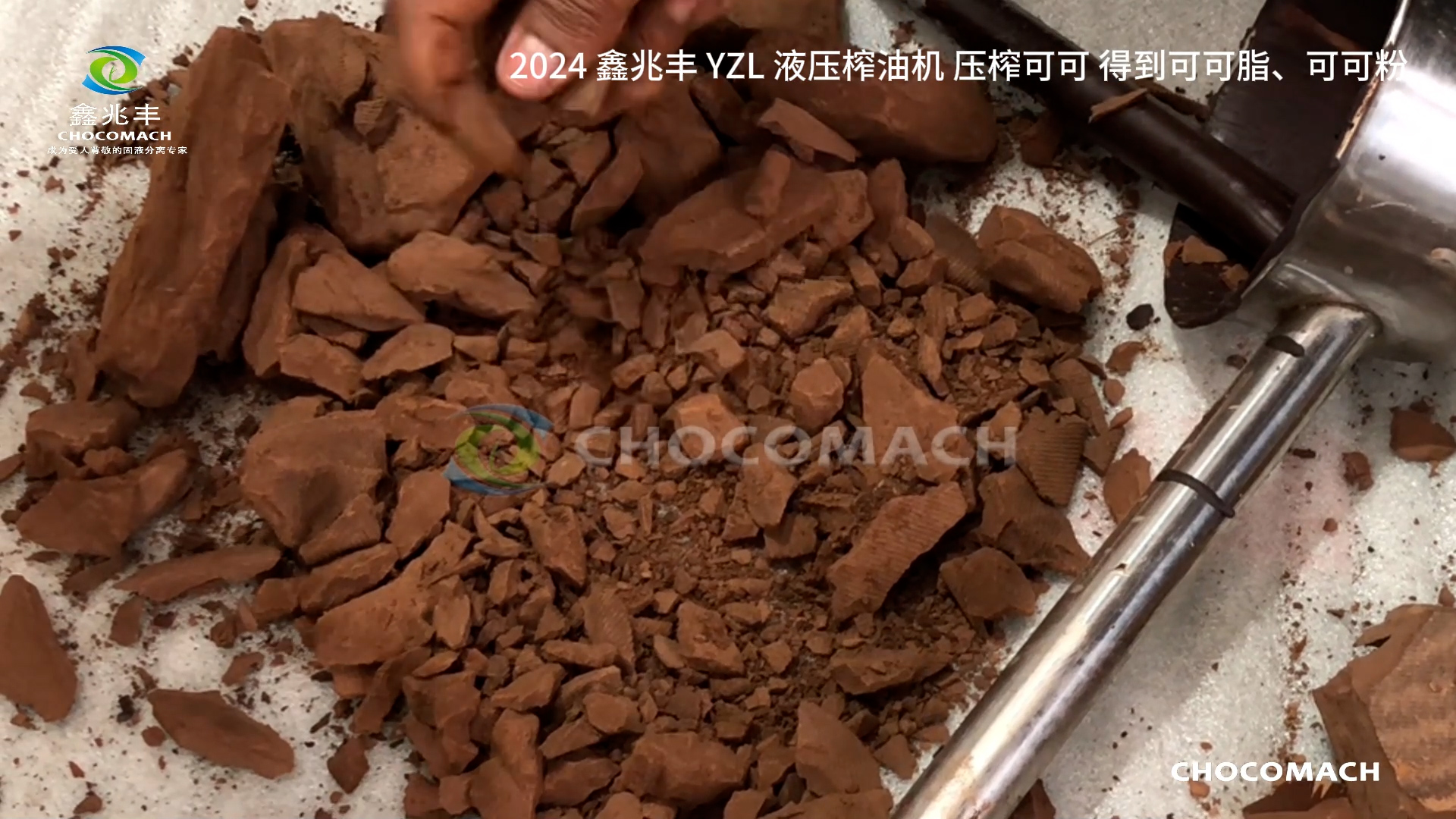 可可餅經(jīng)過破碎研磨加工獲取可可粉 可可液壓榨油機 ↑