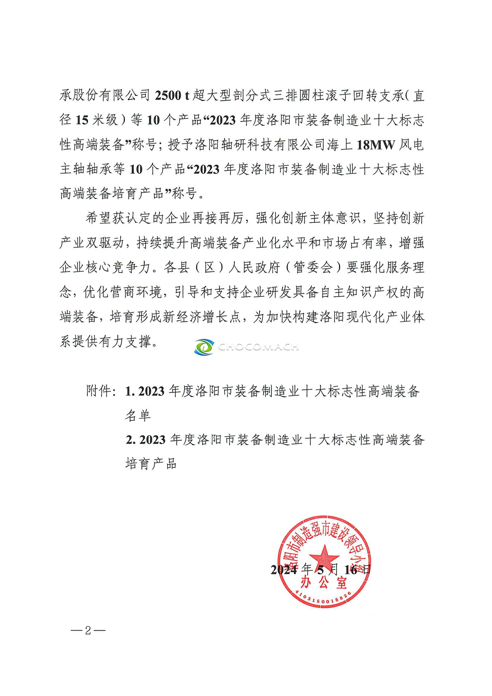 洛制造強市辦〔2024〕7號-2023年度洛陽市裝備制造業(yè)十大標(biāo)志性高端裝備培育產(chǎn)品認定紅頭文件