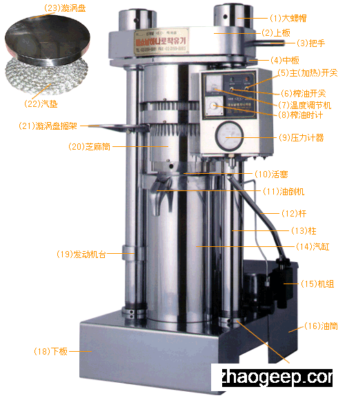 上世紀(jì)90年代,韓國(guó)人成功研發(fā)并生產(chǎn)了快速液壓香油機(jī),又稱為韓式香油機(jī)。該機(jī)型主要采用液壓油缸,采用油線式料筒,充分改變了傳統(tǒng)的古法壓榨香油工藝,使芝麻經(jīng)過篩選、炒制、除煙之后直接壓榨成香油,效率非常高。同時(shí)一次可以加工幾斤到10幾斤不等,加工一次時(shí)間8-10分鐘,用戶購(gòu)買芝麻可以現(xiàn)場(chǎng)加工,一方面確保所榨香油為新鮮香油,另一方面用戶自己購(gòu)買芝麻或種植芝麻可以隨吃隨榨,最重要的是現(xiàn)場(chǎng)壓榨從很大程度上解決了香油摻假的問題,一經(jīng)上市深受廣大用戶喜愛。
