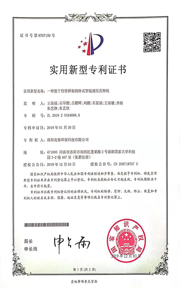 洛陽兆格環(huán)保科技有限公司自成立之初就秉承“創(chuàng)新是企業(yè)發(fā)展的核心動力”的宗旨,始終將客戶技術(shù)領(lǐng)域內(nèi)的痛點解決、技術(shù)研發(fā)作為企業(yè)首要任務(wù),累計獲得25項知識產(chǎn)權(quán),目前18項有效,7項已失效。